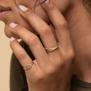 It takes two to start a perfect ring stack. Tame the fates with two good luck charms handcrafted in 14k solid gold and one set with pavé diamonds.